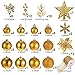Gold Christmas Decoration Set: this package comes with 94 pieces Christmas tree decorations set, including 53 pieces Christmas ball ornaments, 12 pieces berry picks, 6 pieces glitter berry stems, 10 pieces Christmas leaves, 12 pieces Christmas flowers with clips and 1 roll of ribbon, the quantity is sufficient to meet your home decorative needs on Christmas
