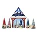 EIGHT-PIECE SET: includes gnome-themed figurines of Joseph, Mary holding Baby Jesus, the three Wise Men, a Shepard, a Sheep, and a stable cardboard backdrop!