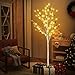 🎄【Led Pre-lit Birch Tree Sets】: 5' and 6' artificial birch tree. Overall height 5FT with 56 led lights. Overall height 6FT with 88 led lights, switch with ON/TIMER/OFF, warm white, birch texture branch, 196" lead in