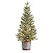 Incredibly lifelike textured branches mimic real evergreens for a sturdy construction. This pre-lit artificial Christmas tree comes with lights and has upward-sloping branches – allowing you to decorate with mini-ornaments of your choice easily. Standing 2ft. from a decorative planter, this tree requires zero maintenance, just some fluffing.