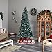 EASY SETUP: Boasting tiers of soft looking pine foliage made up of 1061 bendable branches for holiday ornaments, accented throughout with realistic looking faux holly berries, and lightly frosted with faux snow to evoke a winter setting. Pre-strung with 550 clear LED lights and stabilized on a metal stand, this 8’ tall frosted artificial Christmas tree will ensure your home is holiday-dressed for years to come