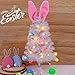 Easter Table Decoration: 23 inch tall lighted artificial white tree decorated with big bunny ears and 10 colorful eggs. With 20 LED lights, the lighted tabletop tree glowing warm white lights, Adding festival atmosphere to the holiday