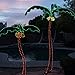 This decorative palm tree is 7 feet tall and is powered by 120V AC. It is UL listed for indoor and outdoor use and comes with a stand.