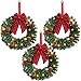 Adorable Lighted Christmas Wreaths: 3 Pack mini Xmas wreaths with large red bow is dia.13 inch, each with 10 LED lights, 4 pine cones and 3 bunch of red berries. The front door artificial Christmas wreath glowing warm white lights, vivid posture make them look more attractive and lovely, it is a perfect indoor outdoor Christmas decoration to greet family