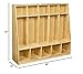 Wooden Storage — sturdy wooden coat locker with 6 coat hooks and 6 small compartments for neatly organizing coats, backpacks, hats, shoes and other items in a bedroom, playroom or classroom