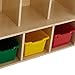 Spacious Storage: Versatile shelving unit with five open storage areas, ten double coat hooks, and ten cubbies for jackets, lunchboxes, and school supplies in a playroom, mudroom, or classroom