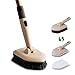 CONVENIENT & EFFICIENT TO USE: This long handle brush contains 2 different replaceable brush heads. The stiff bristle brush is effective to get off grime, stubborn stains and calcium buildup from floor, tile walls. And the non-scratch sponge refill is ideal for cleaning fiberglass shower and surround, porcelain or tile, bathroom floor, acrylic tub etc. Besides, the triangle shape brush head is nice for getting into the corner and crevice. A useful household cleaning tool in indoor and outdoor.