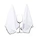 Package includes 2 white microfiber dish towels measuring 27.5 by 20 inches. This kitchen towels are durable, lint-free and super soft will not leave any scratches