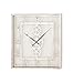 BROWN AND WHITE DISTRESSED FINISH: This large decorative wall clock sports a distressed brown frame as well as white and beige clock face