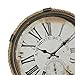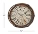 FEATURES ROUND WALL CLOCK: Between the distressed wood with rust look and the Roman numerals, ornate graphics, and decorative hands, this antique-inspired wall clock adds plush vintage personality to any room in your home