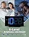 6-𝐋𝐞𝐯𝐞𝐥 𝐒𝐨𝐟𝐭 𝐃𝐢𝐦𝐦𝐢𝐧𝐠 - Our bedside clock features the softest blue light to protect the eyes of kids and elders. There are 6 levels dimmer of the alarm clock, and the brightest level will not distract you when you are studying and working. Plus, the screen can go out if you don't want any light when sleeping