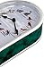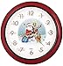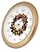 A Christmas carol wall clock features unique illustrated wreath dial with Christmas tone casing.