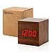 MODERN DESIGN: Modern simplicity design with no buttons or plastic parts located on the front and four sides of the clock. LED light glows through the wooden finish for a clean modern look. Matches perfectly with any modern designed office or home furniture. Clock measures approx. 2.5 x 2.5 x 2.5 inches. Compact and portable. Great addition to any modern office or home furniture.