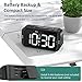 EASY SNOOZE & EASY TO TURN ON/OFF ALARMS - With its big and easy to reach Snooze button, you can get 9 minutes extra rest without fumbling around. And the two buttons to turn the alarms off are easy to reach from the front even when you are half-asleep. And with a large 4.9-inch display but compact size(5.3"x2.9"x1.95") makes it easy-to-read but space-saving, perfect for your bedroom, bedside, nightstand, desk, shelf, table or living room.