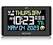 11.5”Extra Large 𝗗𝗶𝗴𝗶𝘁𝗮𝗹 𝗪𝗮𝗹𝗹 𝗖𝗹𝗼𝗰𝗸 with 5 Intensity Levels------Time,date,week and indoor temperature in large,clear white letters on the black display,Highly Visible for Memory Loss,the elderly and the impaired vision,can easily read it from anywhere in your whole living room without putting glasses on.5 brightness Levels allows you to have this in the bedroom and sleep without disturbing glare.