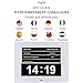 AUTO DIMMER + 8 LANGUAGES -- Dementia Alzheimer Clock display dims at 7:00PM and brighten at 7:00 AM---you also can adjust suitable brightness Level 1-5 by yourself 8 LANGUAGES: English, French, Deutch, Netherlands, Italian, Polish, Spanish and Svenska