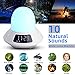 💛 COLORFUL LIGHTS : 9 night lights include gradient color and blue, indigo, purple, red, orange, yellow, green, & white. Multi-color night lights can be used as atmosphere light, sleep aid light, reading light, beside lamp for bedroom and so on. When the kids alarm clock starts to ring, the light will gradually turn on