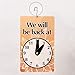GIVE A MESSAGE. Use this 2-sided Be Back Clock Sign to let your customers know when they can expect you.