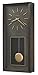 Rectangular Hope wall clock with pendulum. Translucent Satin Espresso wood finish on select veneers. Quartz, battery-operated, single-chime movement plays Westminster chimes on the hour and counts the hour. Automatic nighttime chime shut-off. Requires four AA batteries (not included). Blackened steel finished dial with raised, antique gold finished bar style hour markers. The rectangular pendulum opening is outlined with a antique gold tone border. Pendulum features a translucent satin espresso finished wood stick with a antique gold finished bob.