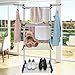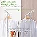 【Fit Your Space & Needs】Dimension: 50.5-74" L x 21.6" W x 57-67.4" H. The extensible horizontal rods of double rail garment rack from 50.5" to 74" provides 3 times more space than ordinary single rail garment rack. Height adjustable from 57" to 67.4" accommodates short and long garments. You can adjust the length and height of rods to meet your space needs.