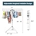 ADJUSTABLE HANGERS: The laundry rack has an adjustable pole that can extend up to 74” in height. The hanger attachments are adjustable along the pole to your desired height.