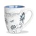 DETAILS - 16oz fine bone china, 4 3/4" x 3 7/8" (5 5/8" w/handle). Handlettered design on both sides of the mug. Hand washing is recommended to preserve the microwave-safe gold finish. Avoid abrasive cloths when cleaning. Use caution when removing mug from the microwave. If sparks occur or the handle becomes too hot, discontinue using in the microwave. Designed in the USA, imported.