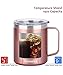 KEEPS HOT 3+ HOURS, COLD 9+ HOURS. Double walled, vacuum sealed, and copper plated travel coffee mug with thick, professional grade 18/8 stainless steel.