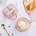 UNIQUE CRAFTSMANSHIP & HANDMADE: Pink marble texture and gold lettering make the coffee mug unique, with a lovely golden cake on the inner lip. Gold printing will not fade or scratch off, and peel away. Unlike other coffee cup mugs, it is made of high quality ceramic, BPA free, microwave and dishwasher safe.