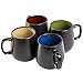 WHAT’S IN THE BOX: four large 21 OZ mugs in red, green, taupe, and blue with a black exterior