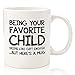 THE PERFECT GIFT FOR A MOTHER OR FATHER - A humorous present for any parent from their child; a unique stocking stuffer for under 20 dollars; the design says “Being Your Favorite Child Seems Like Gift Enough…But Here’s A Mug”