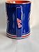 Sculpted ceramic mug decorated with bright and colorful team graphics.