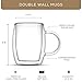 👐 Cool to the Touch - The innovative double wall construction of these glass coffee mugs offers excellent insulation, keeping the outer surface cool to touch even with hot drinks inside. It also eliminates condensation on the outside glass.