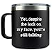 Sarcasm Gift Coffee Mug Tumbler - "Yet Despite the Look on My Face" 14oz Stainless Steel Tumbler with Lid - Sarcastic Funny Gift Idea for Men, Novelty, With Sayings, Women, Guys, Cup