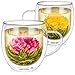 EXTRA THICK & ULTRA STRONG BOROSILICATE GLASS: Impressive and crystal clear, thermal shock resistant borosilicate glass provides the most beautiful cup for viewing Teabloom’s flowering teas while the double walls insulate to keep your tea hot and your hands burn-free. Two beautiful Teabloom Flowering Teas included.