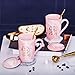 UNIQUE CRAFTSMANSHIP & HANDMADE: Pink marble texture and gold lettering make the coffee mug unique, with a lovely golden cake on the inner lip. Gold printing will not fade or scratch off, and peel away. Unlike other coffee cup mugs, it is made of high quality ceramic, BPA free, microwave and dishwasher safe.