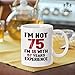 Meaningful Design: Our mug features a delightful quote that reads, "I'm not 75, I'm 18 with 57 years of experience." This lighthearted message adds a dose of fun and positivity, reminding the recipient that age is just a number.