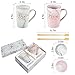 ✔❤Gift Box Packing❤:All you get are showing in the Pic2.Comes in Stylish Packaging with Silk-Finished Interior. This item is ready for gift giving. No need to repackage.1 x 14 oz mug,1 x cup lid, 1 x spoon, 1 x absorbent coaster,1 x Pink Greeting card(You can write down your blessings to your friends).Larger size mugs and more accessories offered,meet your further coffee drinking need or gift giving need!