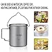 【Multipurpose】The total capacity is 750ml. This cup can be also used as a cooking pot for heating coffee or soup on open fires. It's also effective for juice, milk, tea or coffee storage because titanium of excellent acid and alkali corrosion resistance can maintain the original flavor of food or drinks.
