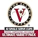 COUNT: Includes 42 Single Serve Pods and Cups, Coffee, Flavored Coffee, Cocoas and Cappuccinos