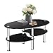 【Modern & Compact】Glass coffee table comes with double shelves and irregularly boards. The oval shape looks modern and you can put your tea cups, flowers and books on the first shelf, the second shelf could used as storage shelf. It saves much space.