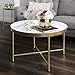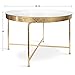 This round, white marble and gold/brass metal coffee or cocktail table is a modern and sleek design that will add glamour to any living room.