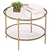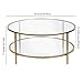 ELEGANT GLASS DESIGN: This round table's glass top makes it a modest yet elegant living room addition for placing magazines, snacks, beverages, or a decorative centerpiece