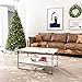 Sturdy 2 tier rectangle coffee table, the glossy faux marble table top is easy to wipe clean with dry cloth without leaving stains nor warping.