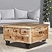🏡【Product Details】Material: Solid rough mango wood (with a matte finish).Dimensions: 27.6" x 27.6" x 15.7" (L x W x H).Polished and lacquered.With 5 drawers and 1 large interior storage compartment.With 4 iron wheels.Assembly is really easy.