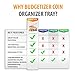 5 SORTING SECTIONS - Budgetizer coin sorters is designed with 5 compartments to hold U.S Coins, Pennies, Nickels, Dimes, Quarters, Halves and Silver Dollars; This coin sorter is perfect to keep your budget on track