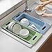 [FLEXIBLE USE - ADJUSTABLE]: This nifty over the sink strainer is your hands-free solution for rinsing, draining, and drying. Its flexible design expands 15.35 to 23.6 inches, allowing you to easily adjust to your sink size! Use in the raised position asmall utensils and cups. Whether you’re draining food, thawing ingredients, or air drying your utensils, you will be impressed! storage. .