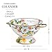 KITCHEN STRAINER: With a heavy-gauge steel underbody and antiqued brass handles, this colander gives some pizzazz to polishing potatoes and sass to straining salad. The hand-applied floral transfers recall a lush English garden in the peak of summer.