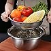 [Wide range of uses]: The stainless steel colander set is great for washing, rinsing, draining, Perfectly used for pasta, spaghetti, vegetable, fruit, meat and seafood, Also can be used as a container to hold fruits and vegetables, stir fruit salads, break eggs, kneading, serve soup, Handle all kinds of work in your kitchen.
