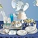 BLUE ELEPHANT PARTY SUPPLIES SET SERVES 24: Vivid blue elephant baby shower & birthday party supplies set that includes 24 9” dinner plates, 24 7” appetizer or dessert plates, 24 9 oz paper cups, 24 blue polka dot paper straws and 24 napkins featuring an adorable elephant and elegant florals. This adorable set serves 24 and is perfect for blue elephant baby shower decorations for boys and blue elephant Birthday Parties.