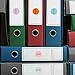 Round labels in four bright colors (red yellow green blue)